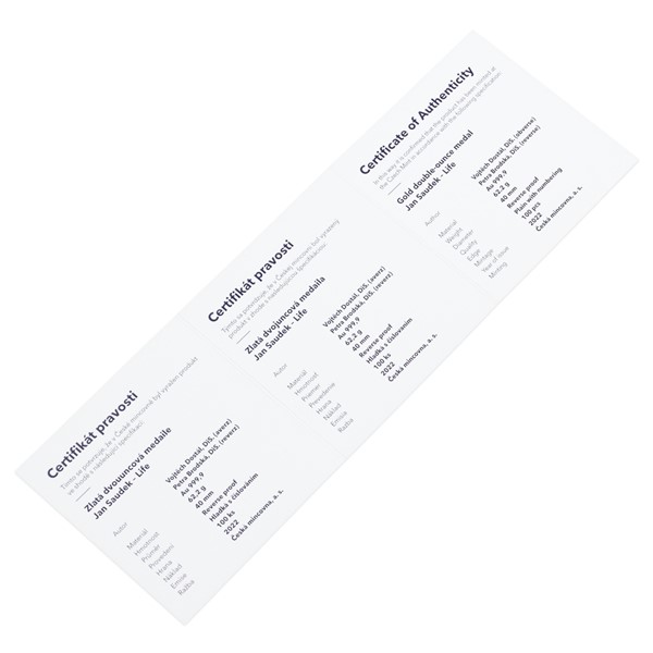 Zlatá dvouuncová medaile Jan Saudek - Life reverse proof
