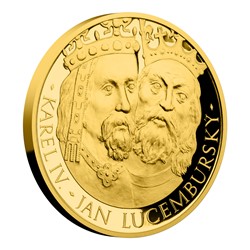 Zlatá dvouuncová mince Karel IV. a Jan Lucemburský proof