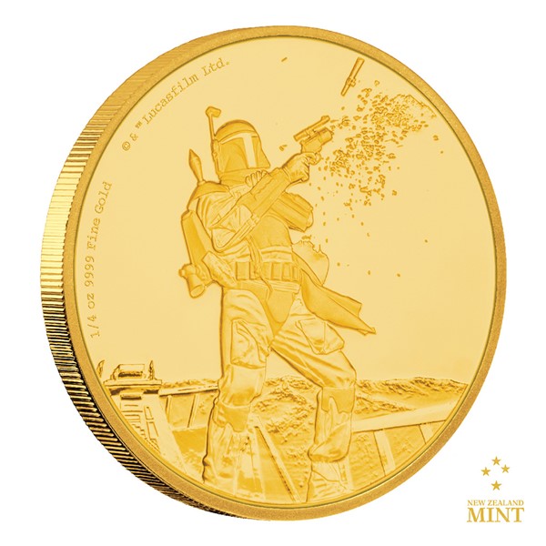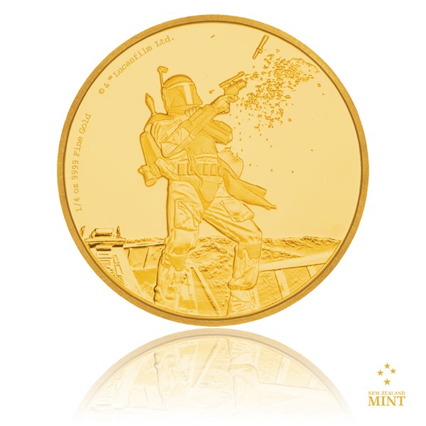 Zlatá investiční mince 1/4 Oz 25 NZD Star Wars Boba Fett proof