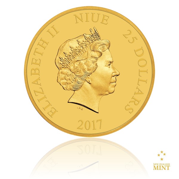 Hlavním motivem reverzní strany mince je hned první scéna z prvního filmu z roku 1977 – droidi C 3PO a R2-D2 procházejí koridorem na hvězdné lodi, která je pod útokem zlovolného Impéria. Emitentem mince je tichomořský ostrov Niue, a averzní strana ražby proto nese jeho atributy – jméno a portrét královny Alžběty II., rok vydání mince 2017 a nominální hodnotu 25 DOLLARS (NZD). Reliéf oficiálně licencované mince je dílem výtvarného kolektivu New Zealand Mint.