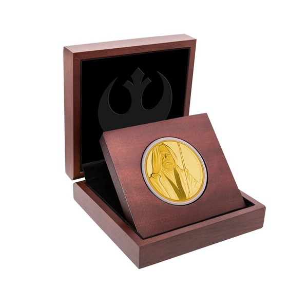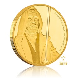 Další zlatá mince z vesmírného cyklu Star Wars představuje Obi-Wana Kenobiho, legendárního rytíře Jedi, jehož hrdinské činy ovlivnily osud celé jedné předaleké galaxie.