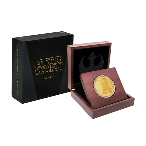 Pokud znáte filmovou sérii Star Wars, znáte také jméno R2-D2 či Ártůdýtů. Mechanickému hrdinovi, který si získal srdce fanoušků na celém světě, patří další zlatá pamětní mince z cyklu inspirovaného populární galaktickou ságou.