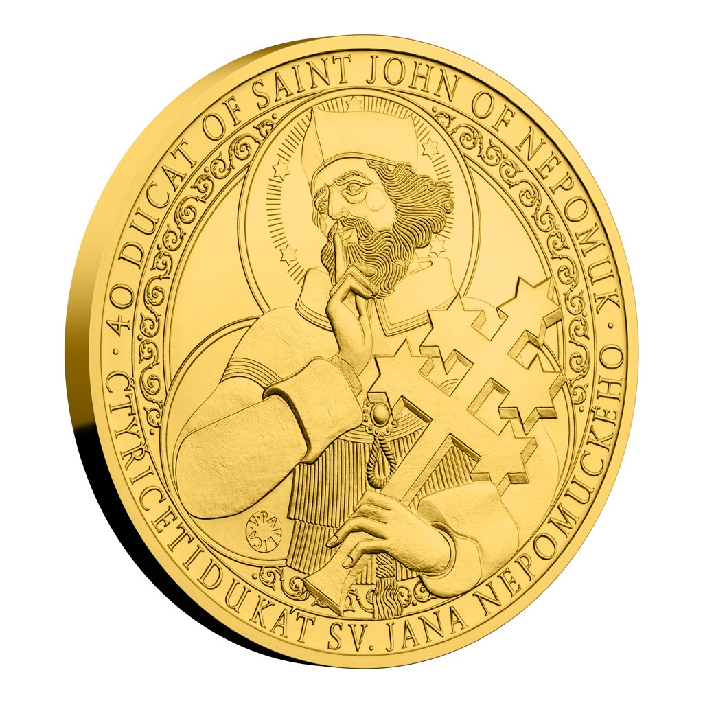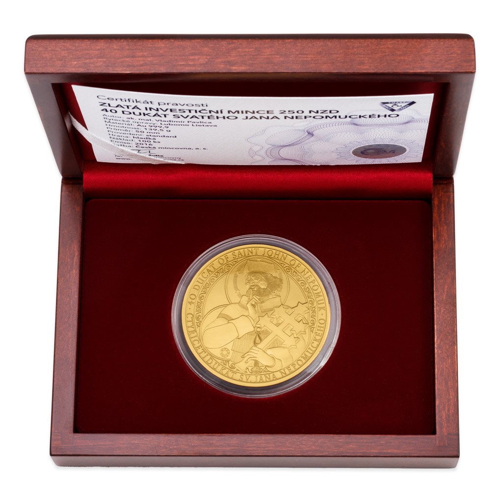 Zlatá investiční mince 40dukát sv. Jana Nepomuckého stand