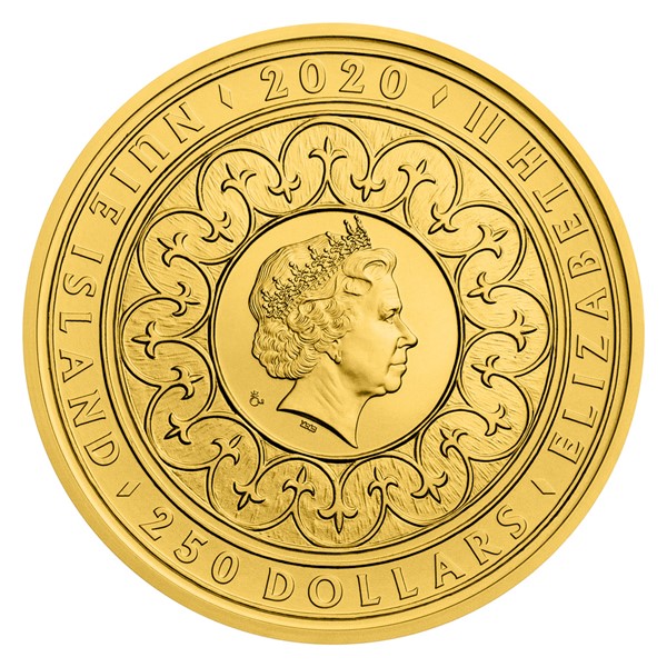 Reverzní straně mince, která je dílem medailérky Petry Brodské, DiS., vévodí pohled na jižní stranu věže Staroměstské radnice doplněný propracovanými detaily soustrojí astronomického ciferníku a kalendářní desky orloje. Opis na reverzu uvádí STAROMĚSTSKÝ ORLOJ. Protože se jedná o minci vydávanou v zahraniční licenci ostrova Niue, nese averzní strana nezbytné atributy emitenta – jméno a portrét královny Alžběty II., nominální hodnotu 250 DOLLARS (NZD) a rok emise 2020. Kompozici averzu dotvářejí ozdobné ornamenty.