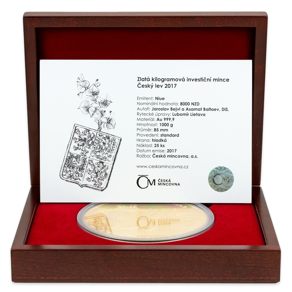 Každá mincovní velmoc má své zlaté investiční mince. Ty jsou určeny především investorům, kteří chtějí využívat výhod staletími prověřeného drahého kovu. Kilogramové zlaté mince jsou vlajkovou lodí nové investiční řady nazvané Český lev.