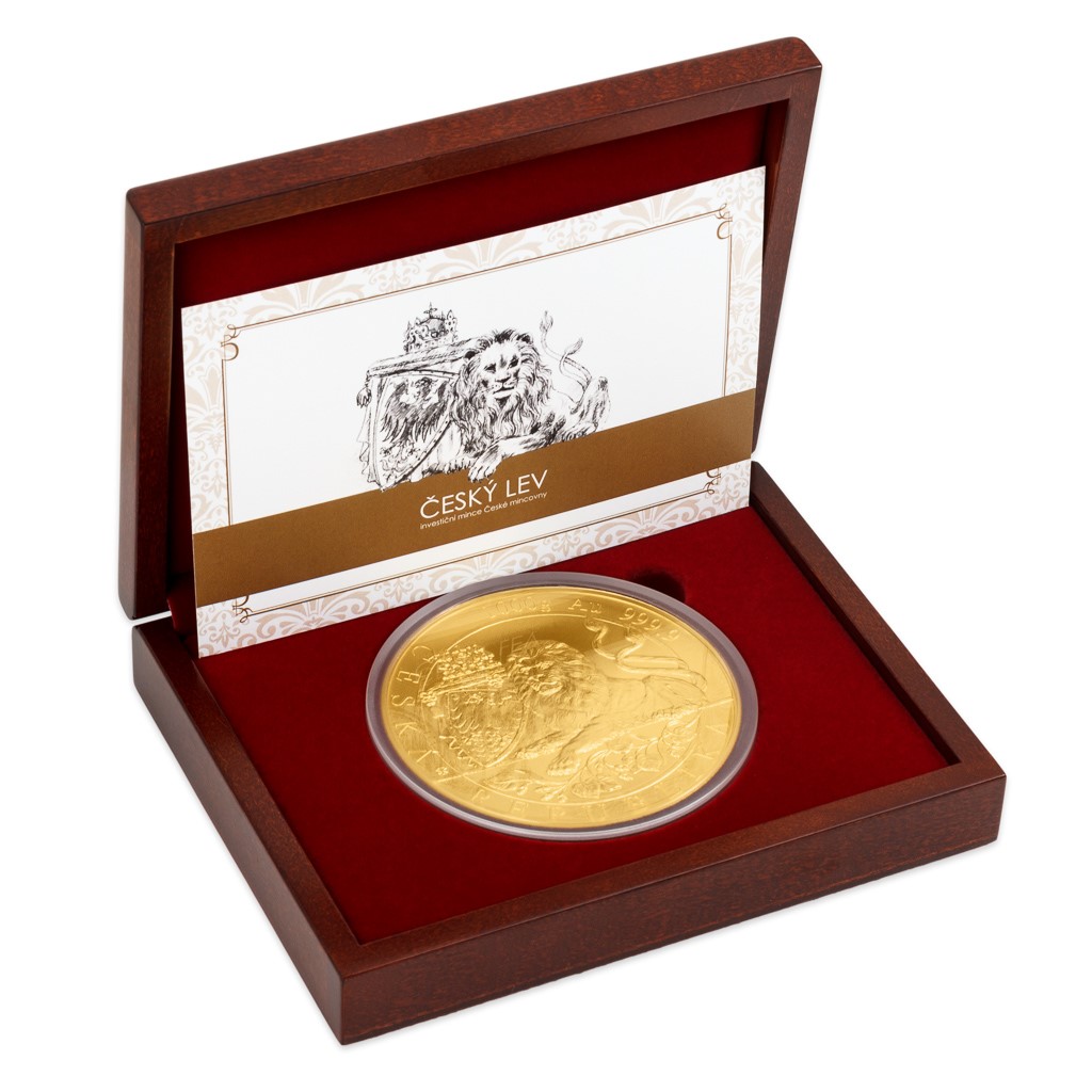 Zlatá kilogramová investiční mince Český lev 2019 stand