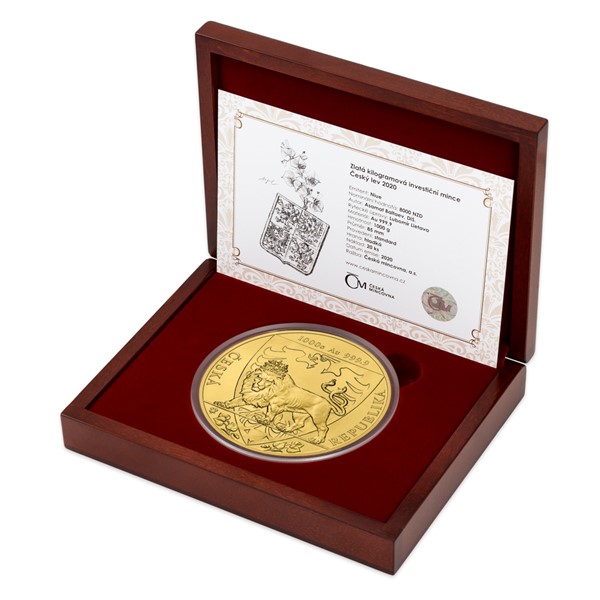 Investujte své finance do jednoho kilogramu ryzího zlata osvobozeného od DPH v podobě precizně zpracované vlastenecké ražby. Celkový emisní náklad mince čítá 45 kusů, z nichž 20 kusů je k dispozici samostatně (dalších 25 kusů je součástí ucelených sad zlatých investičních mincí). Mince je uložena do luxusní dřevěné krabičky.