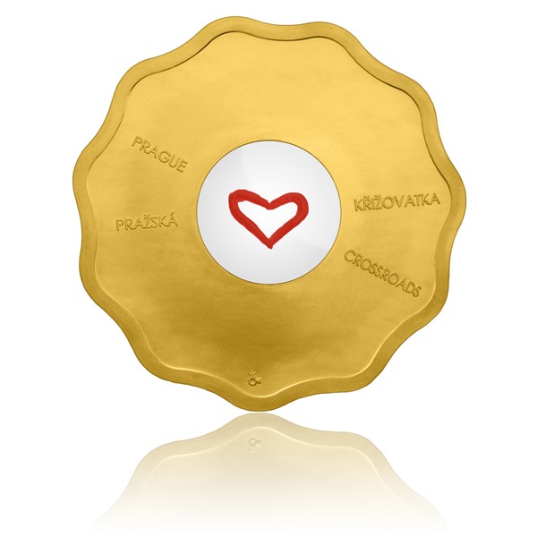 Při navrhování první medaile z cyklu Bořek Šípek nezapřel svoji lásku ke sklu. Středu medaile, která nemá tradiční kruhový tvar, nýbrž připomíná květinu, totiž vévodí skleněná lupa. Na té je navíc namalováno červené srdce – motiv, který si každý neomylně spojí s Václavem Havlem. Právě jeho jméno tvoří spolu s názvem medaile opis averzní strany. Reverzní strana pak nese text Pražská křižovatka v českém a anglickém jazyce.
