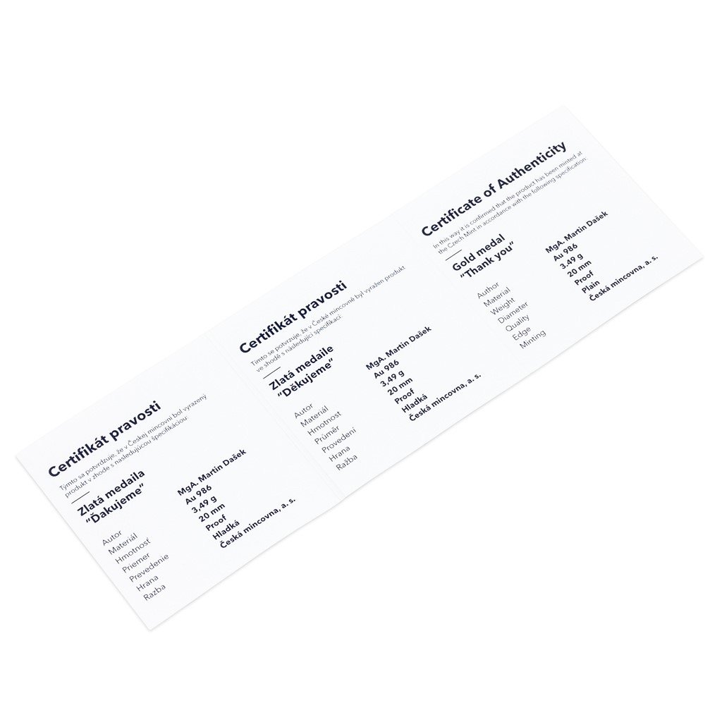 Zlatá medaile "Ďakujeme" proof