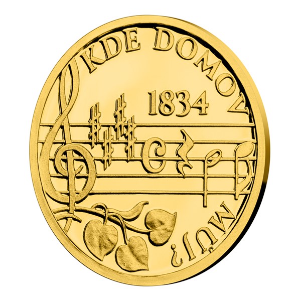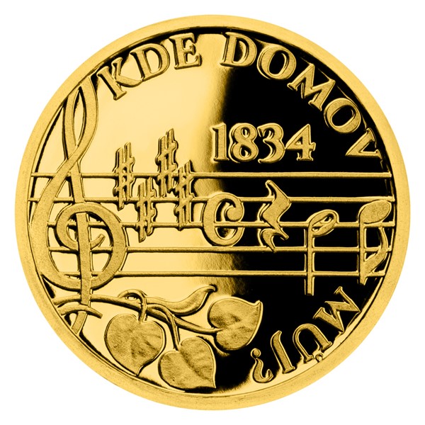 Reliéf pamětní medaile, jejímž autorem je medailér Asamat Baltaev, DiS., předkládá opis KDE DOMOV MŮJ?, část notového zápisu písně, letopočet jejího vzniku 1834 a vlasteneckou symboliku – siluetu Hradčan a lipové ratolesti.