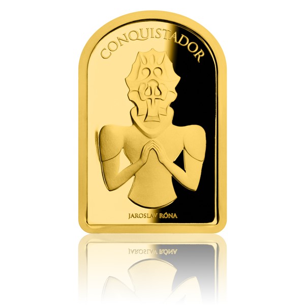Předloha předposlední zlaté medaile České mincovny ze série Umění pro Václava Havla pochází z ateliéru malíře a sochaře Jaroslava Róny. Jejím motivem je Conquistador – španělský dobyvatel Nového světa –, který na první pohled nemá s prvním českým prezidentem mnoho společného. Opak je pravdou.