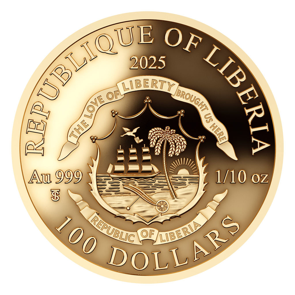 Reverzní strana mince předkládá Amenhotepa a Nefertiti v láskyplném objetí. Oba jsou ověnčeni odznaky moci. Averzní strana je pak věnována nezbytným atributům emitenta mince, kterým je stát Libérie – nese jeho státní znak, nominální hodnotu 100 DOLLARS (LRD) a letopočet emise 2025.