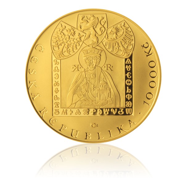 Počínaje rokem 2012 začala Česká národní banka vydávat tzv. „mimořádné ražby“ – čili pamětní mince s nominální hodnotou 10 000 Kč. Druhá mince z této volné série byla v roce 2013 věnována 1150. výročí příchodu věrozvěstů Konstantina a Metoděje na Velkou Moravu. Mince z ryzího zlata jsou vyraženy ve špičkové kvalitě proof.