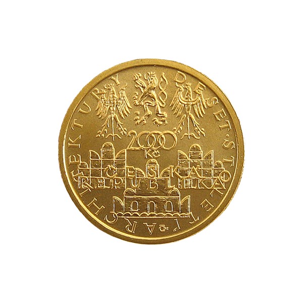 Zlatá mince 2000 Kč 2003 Deset století architektury-Štít domu ve Slavonicích stand