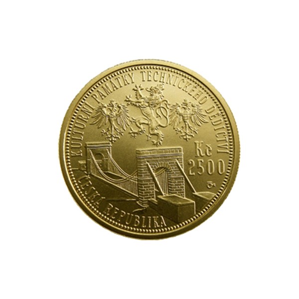 Zlatá 2500 Kč mince Řetězový most ve Stádlci proof