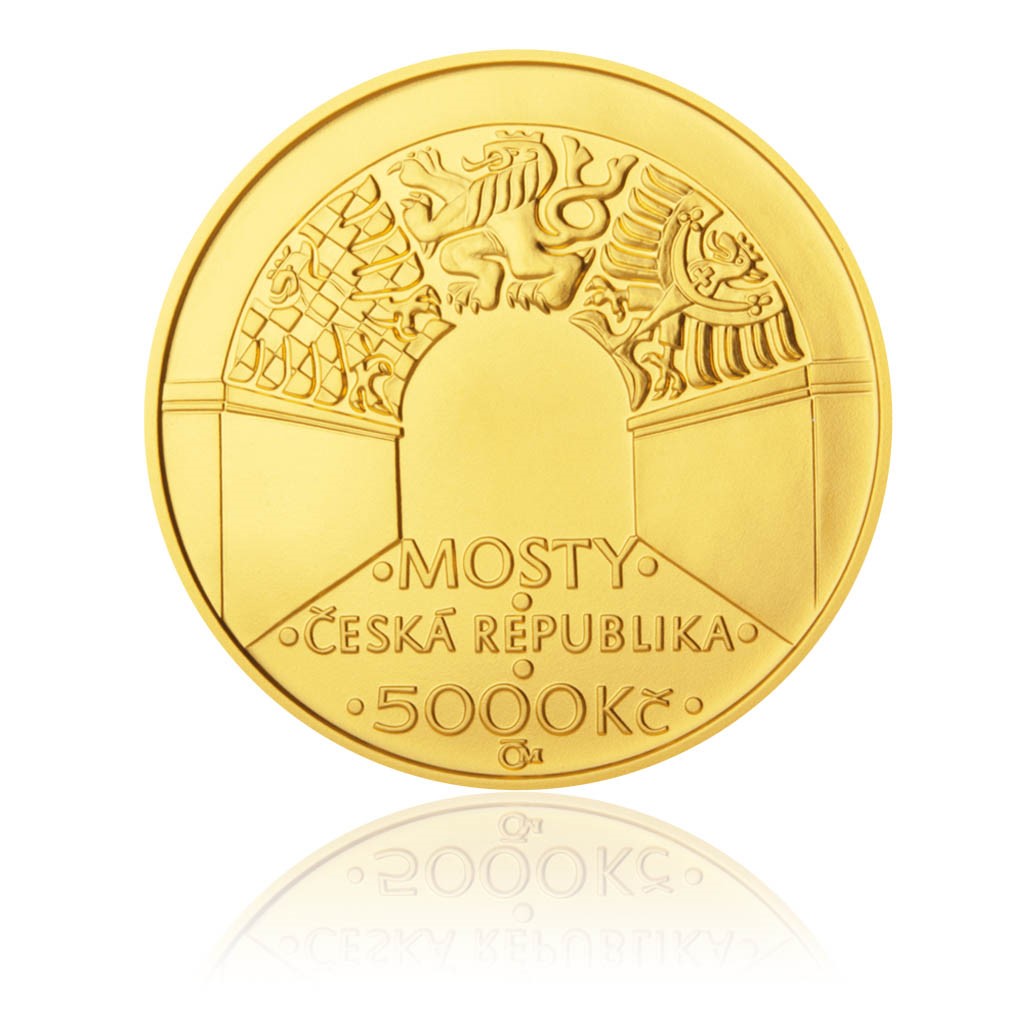 Na lícní straně mince je vymodelován průhled jedním z oblouků a do jeho stropu jsou zakomponována heraldická zvířata ze státního znaku České republiky. U paty oblouku je umístěn text MOSTY - ČESKÁ REPUBLIKA, nominální hodnota mince 5000 Kč a značka mincovny.