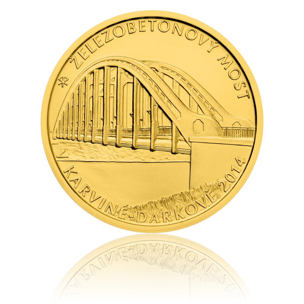 Zlatá mince 5000 Kč 2014 Železobetonový most v Karviné - Darkově stand