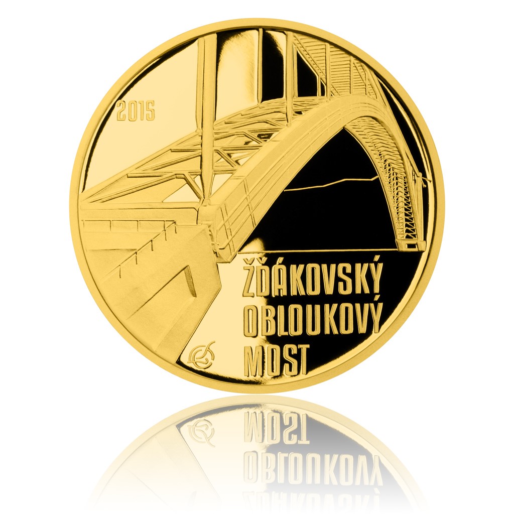 Zlatá mince 5000 Kč 2015 Žďákovský obloukový most proof