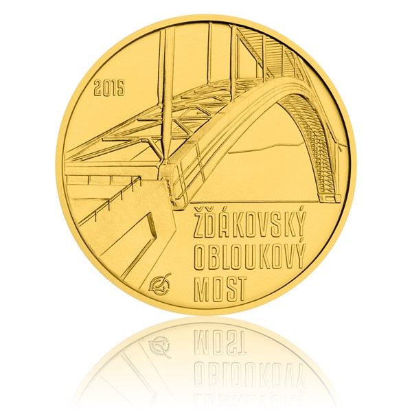 Soutěže o podobu nové zlaté mince se zúčastnila celá řada nadaných umělců, kteří předvedli velmi zdařilé kompozice. Komise však nakonec udělila první místo a doporučení k realizaci návrhu vynikajícího medailéra Luboše Charváta. Ten komisi přesvědčil monumentálním zpodobněním spojů mostní konstrukce a realisticky ztvárněnými detaily. Uznání získalo také jeho čisté zobrazení mostního oblouku a harmonie obou stran. Averz mince nese texty „ČESKÁ REPUBLIKA“ a „MOSTY“, označení nominální hodnoty „5000 Kč“ a kompozici tří zemských znaků. Reverz pak doplňují nápisy „ŽĎÁKOVSKÝ OBLOUKOVÝ MOST“ a „2015“. Tato zlatá mince je mimořádně kvalitním uměleckým dílem, které svým elegantním designem projasní vaše vzácné sbírky.