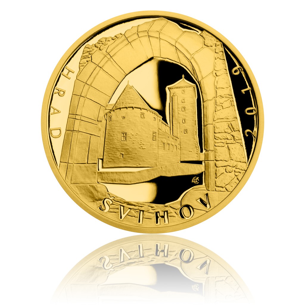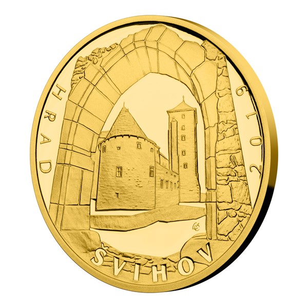 Osmým hradem, který se objevuje na zlaté minci České národní banky s nominální hodnotou 5000 Kč, je Švihov. Krása gotické stavby vyniká ve špičkové kvalitě proof.