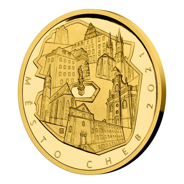 V roce 2021 se otevírá nový pětiletý cyklus České národní banky, který je věnovaný nejvýznamnějším městským památkovým rezervacím České republiky. První zlatá mince s nominální hodnotou 5000 Kč, která byla vyražena ve špičkové kvalitě proof, připomíná krásy Chebu.