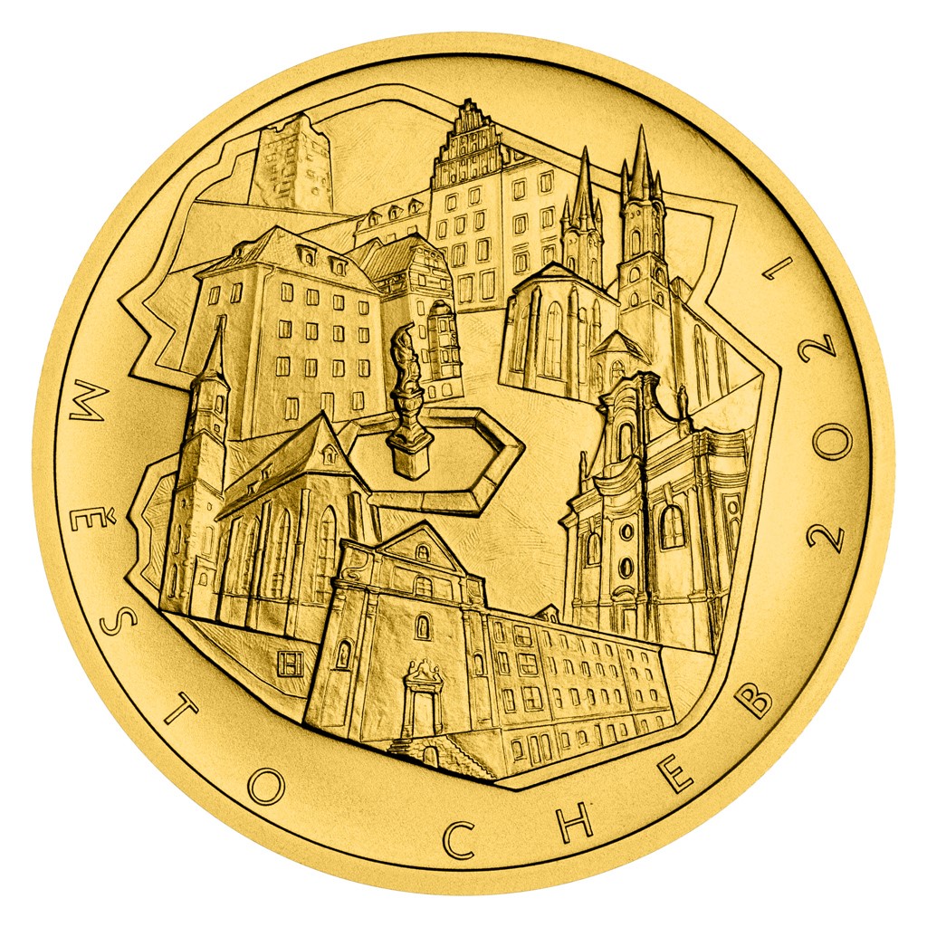 Nový pětiletý cyklus České národní banky, který se otevírá v roce 2021, připomíná nejvýznamnější městské památkové rezervace České republiky. První zlatá mince s nominální hodnotou 5000 Kč, která byla vyražena v kvalitě standard, je věnována Chebu.