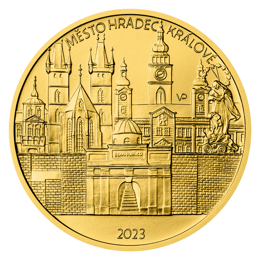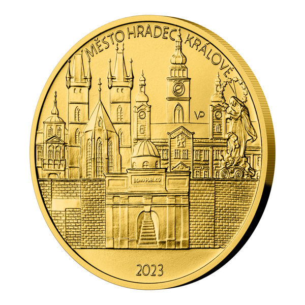 Na šesté zlaté minci z pětiletého cyklu České národní banky, který je věnovaný městským památkovým rezervacím České republiky, se představují krásy Hradce Králové. Ražba s nominální hodnotou 5000 Kč je vyvedena v kvalitě standard.