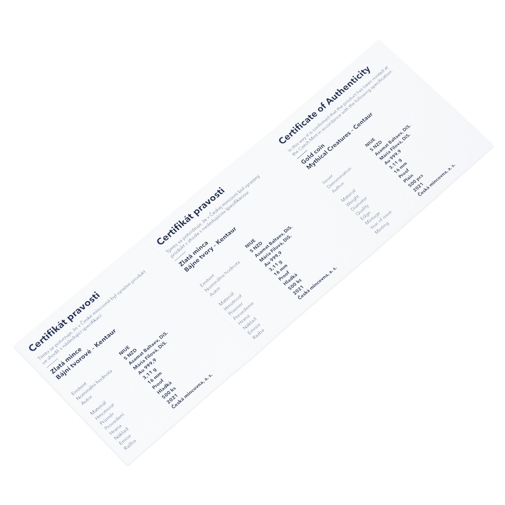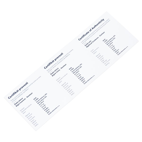 Osmá zlatá mince České mincovny ze sběratelské série Bájní tvorové je věnována kentaurům.