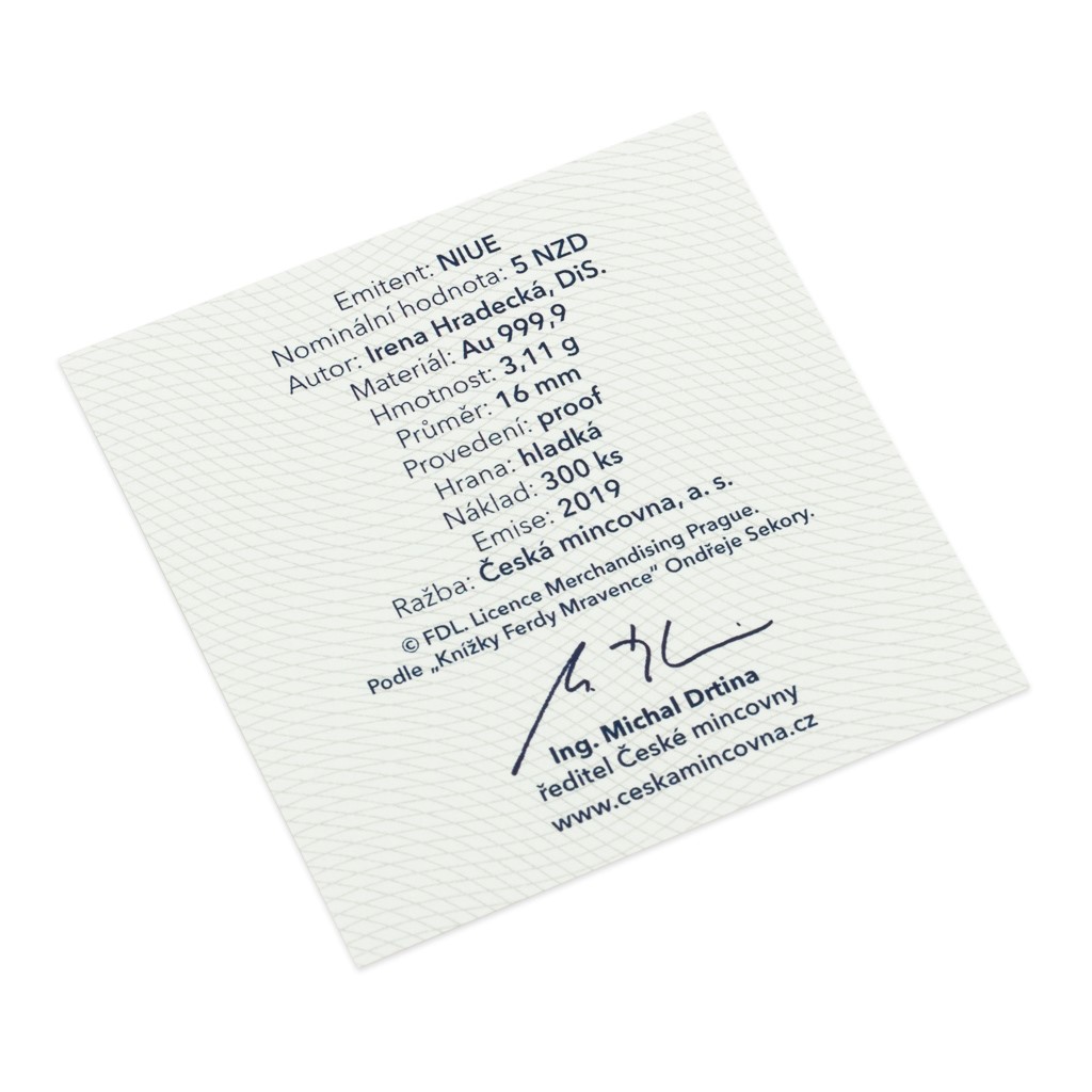 Pětidílnou sběratelskou minisérii České mincovny, která vznikla u příležitosti 85. narozenin Ferdy Mravence, zahájila mince věnovaná samotnému oslavenci. Jako druhý se v ryzím zlatě představuje brouk Pytlík.