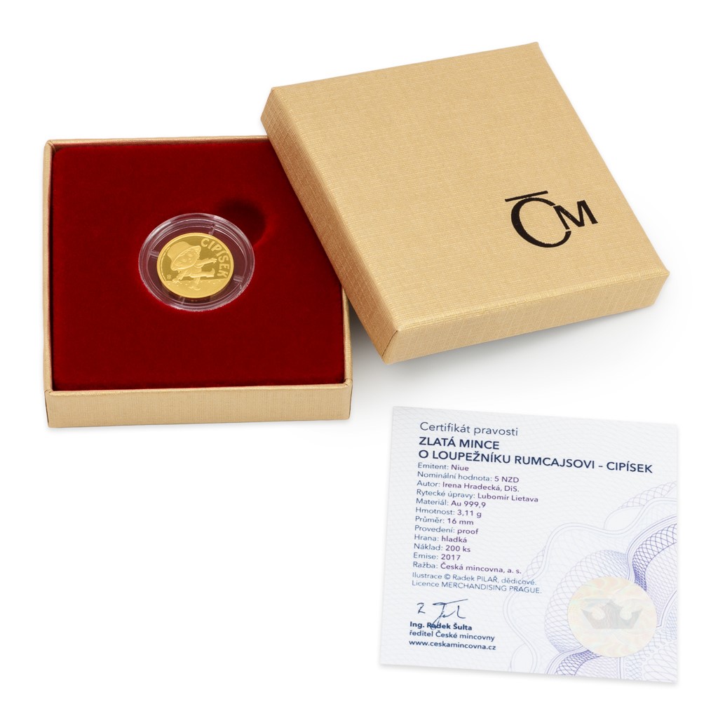 Zlatá mince s Cipískem je závěrečnou emisí třídílné sběratelské minisérie. Pokud jste si pořídili Rumcajsovu minci, obdrželi jste spolu s ní také sběratelské album, ve kterém má své místo i jeho synek!
