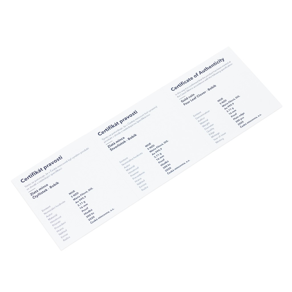 Zlatá mince Čtyřlístek - Bobík proof