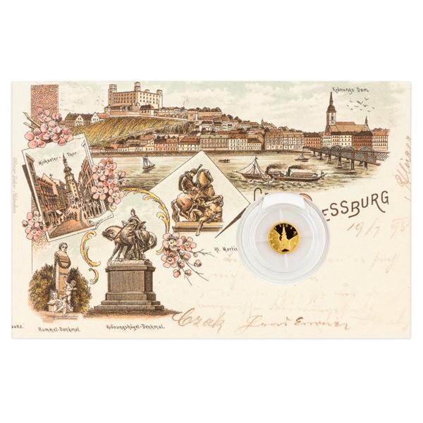 Zlatá mince Dobové pohlednice Bratislava - Michalská brána SK proof