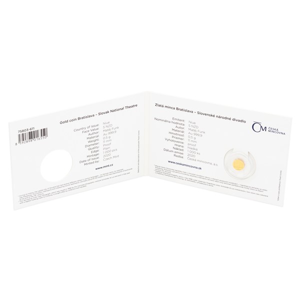 Řada replik dobových pohlednic, do kterých jsou zasazeny pamětní mince vyražené z jedné poloviny gramu ryzího zlata, patří k oblíbeným stálicím České mincovny. Protože Českou mincovnu nově najdete také na Slovensku, připravili jsme i několik slovenských témat. Jedním z prvních je Slovenské národní divadlo, které v roce 2020 slaví 100. výročí založení.