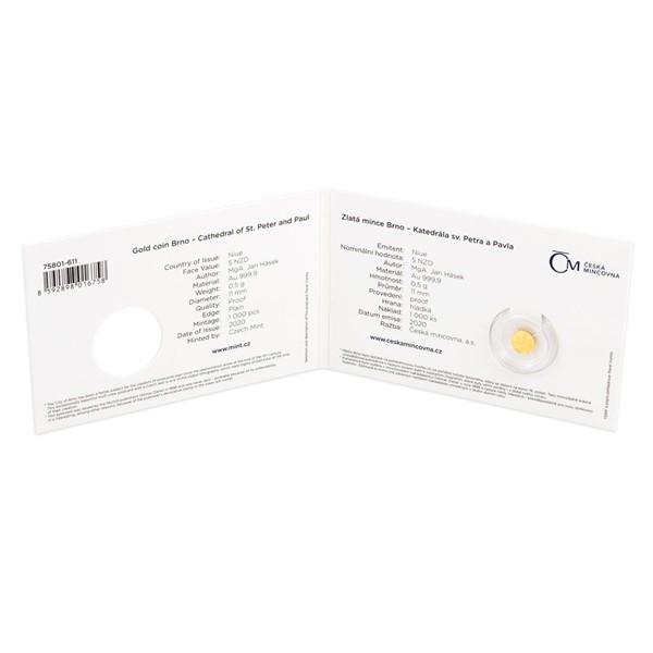Jednotlivá okénka pohlednice nabízejí rozličné pohledy na moravskou metropoli, ale mince samotná je věnovaná Petrovu – čili kamennému ostrohu, na kterém stojí katedrála svatého Petra a Pavla. „Zvolil jsem pohled na katedrálu od jihu, abych podtrhnul křesťanský význam orientace kněžiště na východ,“ vysvětluje autor mince MgA. Jan Hásek. Protože mince České mincovny vycházejí v licenci zahraničního emitenta, kterým je ostrov Niue, averzní strana nese jeho nezbytné atributy – nominální hodnotu 5 DOLLARS (NZD), jméno a portrét královny Alžběty II. a rok vydání 2020.