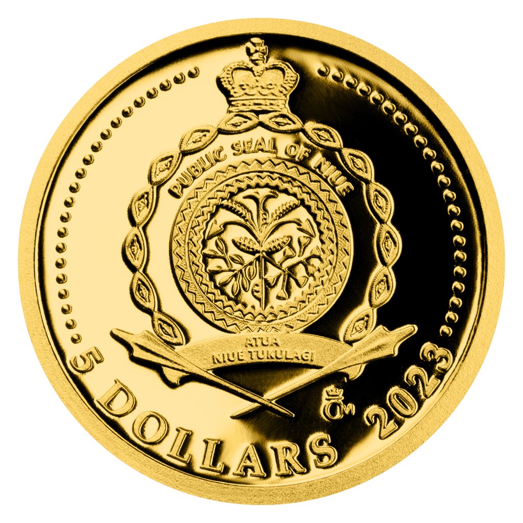 Medailér Matěj Funk, DiS. věnoval reverzní stranu mince budějovické radnici. Tato chráněná památka vznikla v průběhu 15. století spojením dvou gotických měšťanských domů a v 18. století prošla barokní přestavbou. Protože mince České mincovny vycházejí v zahraniční licenci ostrova Niue, nesou na averzní straně státní znak, nominální hodnotu 5 DOLLARS (NZD) a rok emise 2023.