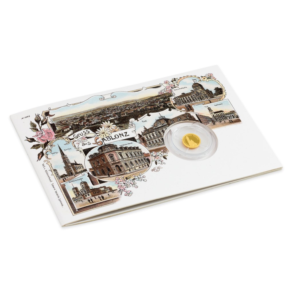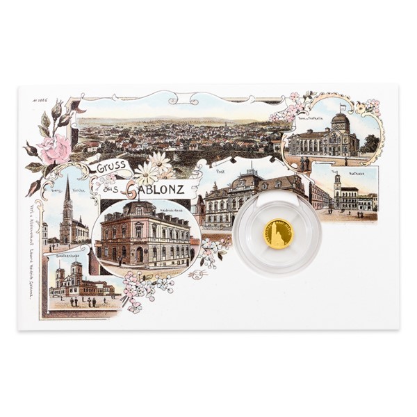Po úspěšné emisi s motivem Prahy a jejího Hradu připravila Česká mincovna další půlgramovou zlatou minci uloženou do repliky dobové litografické pohlednice. Tentokrát je tématem město Jablonec nad Nisou – sídlo České mincovny – s místním kostelem Povýšení svatého Kříže, který je významnou stavbou sakrální secesní architektury.