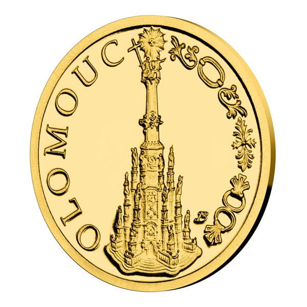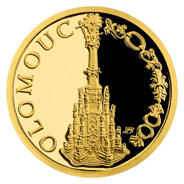 Zlatá mince Dobové pohlednice Olomouc - Sloup Nejsvětější Trojice proof