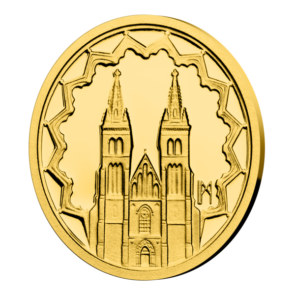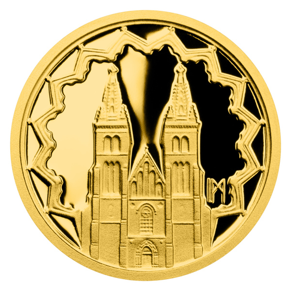 Vyšehrad je památným místem, které podle pověsti založil bájný kníže Krok a kde sídlil první český král Vratislav II. Skála nad řekou Vltavou však nebyla jen sídlem světské moci, ale také duchovního života, což dokazuje monumentální chrám svatých apoštolů Petra a Pavla. Kostel, který byl původně raně románskou bazilikou, byl v průběhu historie opakovaně přestavován – goticky, barokně a novogoticky. Sám Vratislav II. při něm založil královskou kolegiátní kapitulu, která dodnes pečuje o Vyšehrad a jeho křesťanské i kulturní tradice. Vyšehradské dědictví s nádherným výhledem láká zástupy návštěvníků, a proto nezůstalo opomenuto v pohlednicové tvorbě. „Tříbarvotisková pohlednice, která posloužila jako předloha pro balení mince, věnuje pozornost chrámu sv. Petra a Pavla v podobě před novogotickou přestavbou z přelomu 19. a 20. století a také nejstarší pražské rotundě sv. Martina,“ říká znalec pohlednic Pavel Vursta.