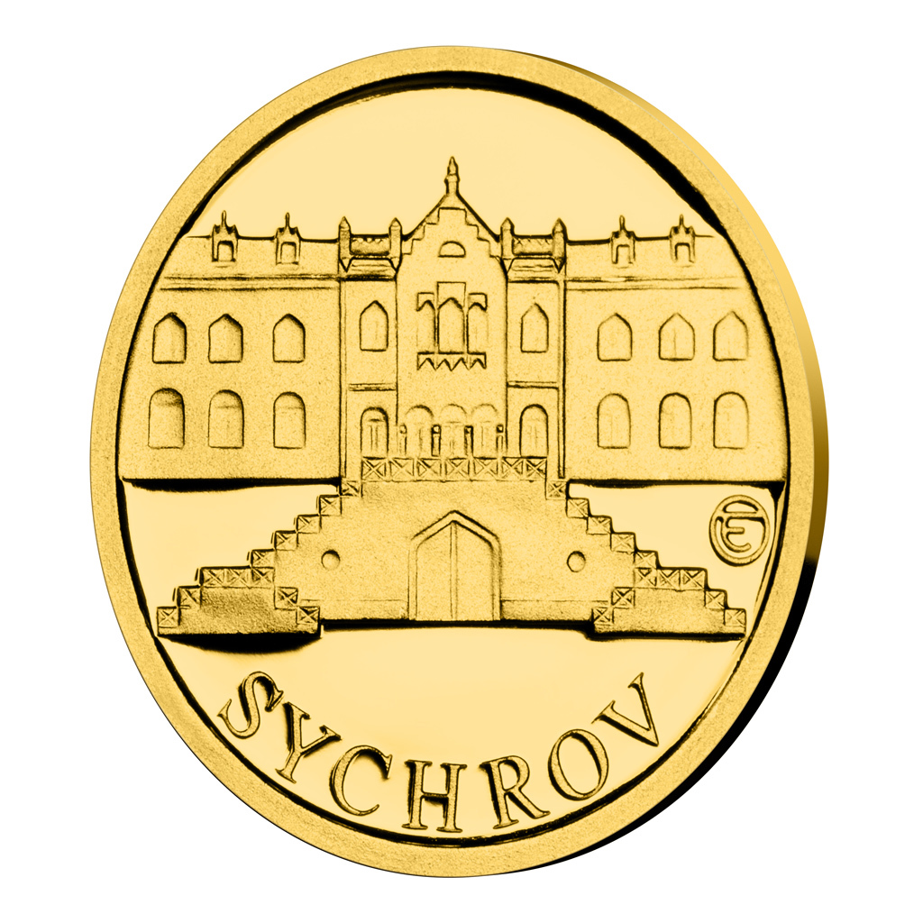 Od 19. století sloužil severočeský zámek Sychrov jako rezidence šlechtického rodu Rohanů, který pocházel z Francie. Tato skutečnost se výrazně promítla do podoby kouzelného komplexu, který patří k nejvýznamnějším stavbám ve stylu romantické novogotiky francouzského typu. Zámek hostil řadu velkých osobností – francouzského krále Karla X., pruského krále Viléma I., rakouského císaře Františka Josefa I. či české skladatele Josefa Suka a Antonína Dvořáka. Tito vzácní návštěvníci mohli obdivovat výzdobu, která byla mistrným dílem českých řezbářů, honosný mobiliář i rozlehlý anglický park. „Rozsáhlá přestavba barokního zámku na sídlo ve stylu romantické gotiky se promítla do podoby sběratelsky zajímavé pohlednice, která posloužila jako předloha pro balení mince. Pohledy na zámek a okolí doplňuje záběr řezbářského závodu, který se výrazně podílel na přestavbě interiéru šlechtického sídla,“ říká znalec pohlednic Pavel Vursta.
