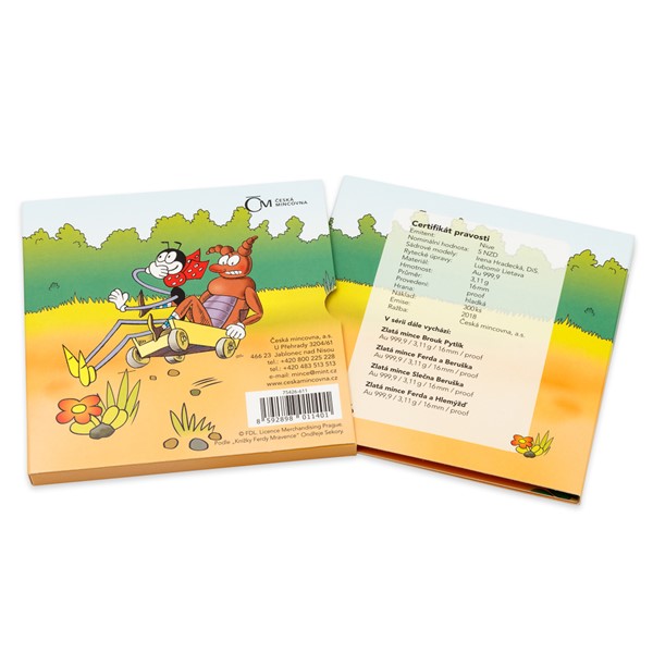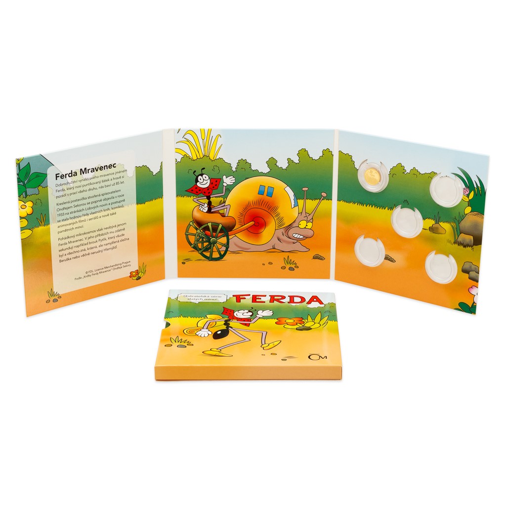 Kdo by neznal pohádkového mravence jménem Ferda, který nosí puntíkovaný šátek a hravě si poradí s prací všeho druhu. Na svět přišel před 85 lety a u příležitosti jeho narozenin vychází první zlatá mince z pětidílné sběratelské minisérie České mincovny.