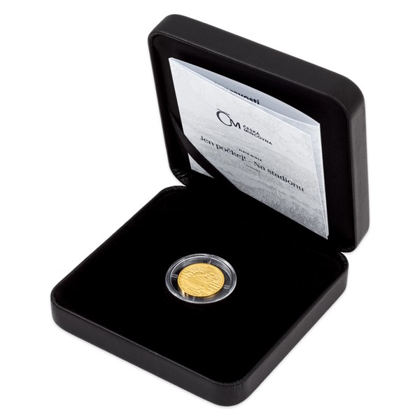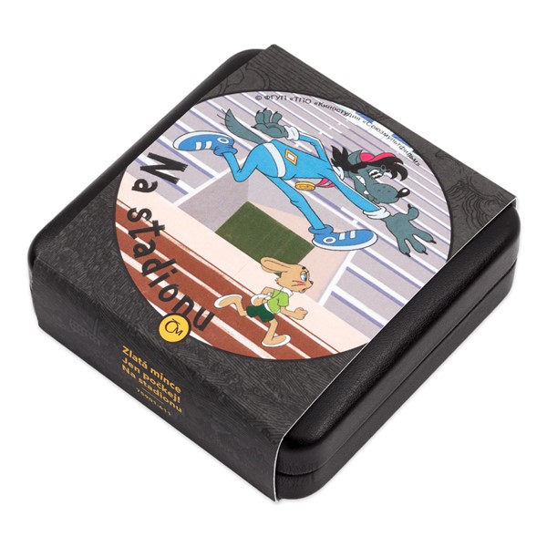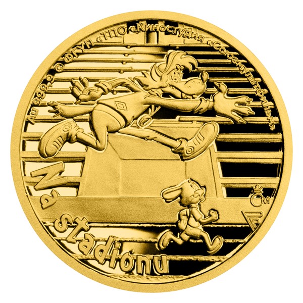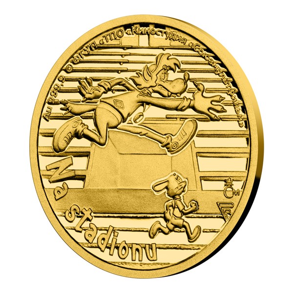 Motivem třetí zlaté mince České mincovny z pětidílné minisérie, která je inspirována nesmrtelnou sovětskou groteskou Jen počkej!, se stala epizoda s názvem Na stadionu.