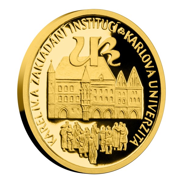 Karel IV. – jedenáctý český král, římský císař a král německý, lombardský, burgundský, markrabě moravský a hrabě lucemburský, jehož osvícenost pronikala do celé řady oborů. Coby nesmírně moudrý člověk si tak silně uvědomoval význam vzdělanosti národa napříč všemi společenskými vrstvami a dopřál proto Čechům první vysokou školu. Její motiv se objevuje na poslední ze čtyř ražeb sběratelské minisérie, kterou vydává při příležitosti 700. výročí narození velkého panovníka a největšího Čecha Česká mincovna.