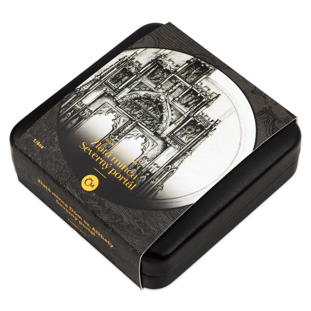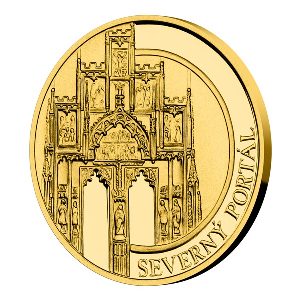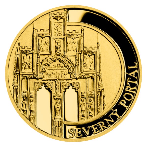 Druhá zlatá mince České mincovny ze čtyřdílné minisérie, která vzdává hold košickému dómu svaté Alžběty, nese vyobrazení severního portálu.