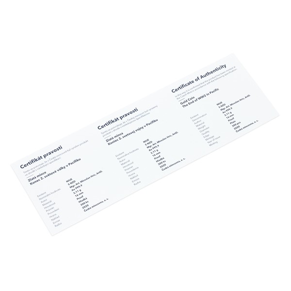 Od konce druhé světové války uplynulo v roce 2020 75 let. Druhá zlatá mince České mincovny z tematické dvoudílné minisérie připomíná vítězství v Pacifiku.