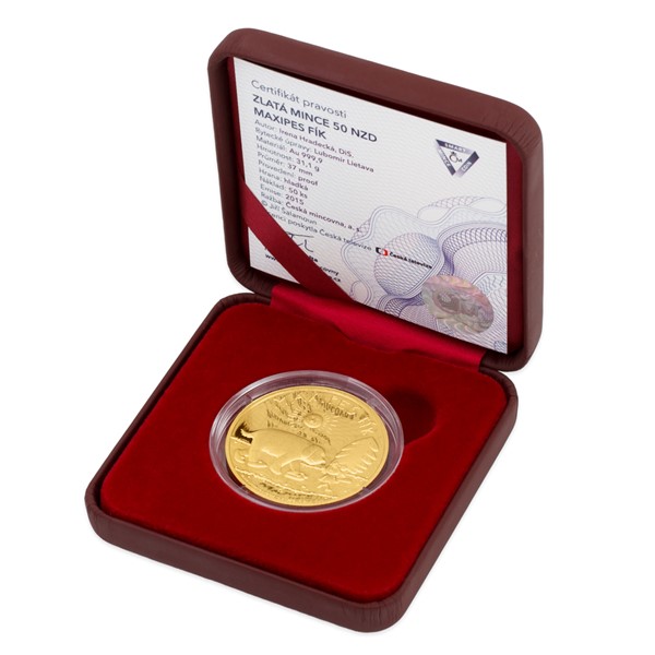 Emise zlaté mince 5 NZD od České mincovny připomíná krásné pohádkové dvouvýročí. V roce 2015 totiž televizní Večerníček slaví rovných 50 let a oblíbenému Maxipsu Fíkovi je letos čtyřicet. Mince ze zlata je nádhernou upomínkou na večery strávené v jejich společnosti a také oslavou českého filmového umu proslulého nápaditostí, profesionalitou a typickým humorem.
