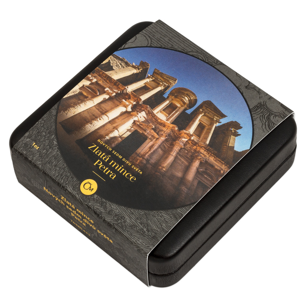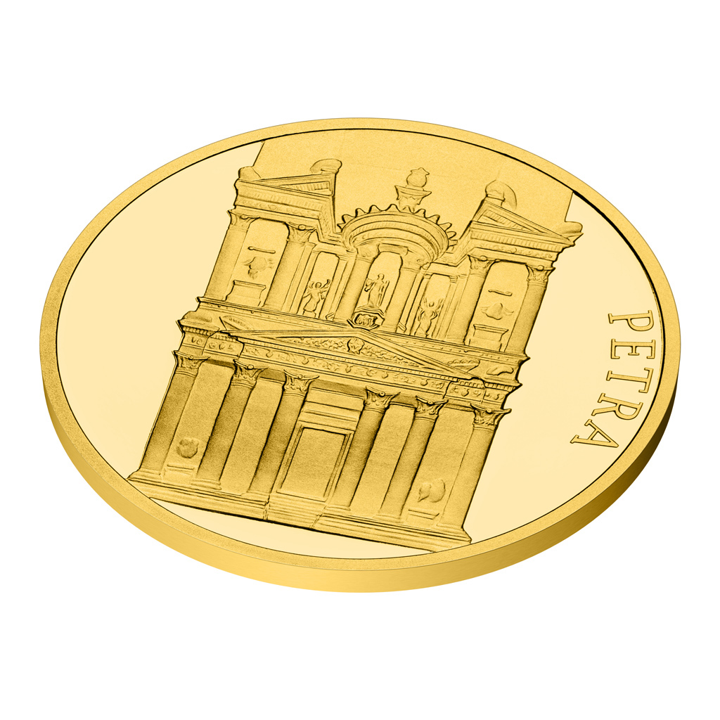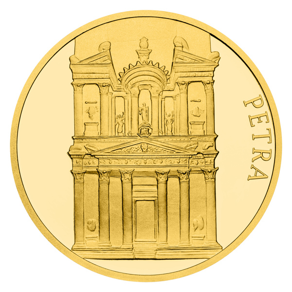 Čtvrtým z nových sedmi divů světa je jordánské skalní město Petra. Legendární památku připomíná zlatá mince České mincovny o hmotnosti jedné trojské unce.