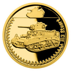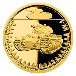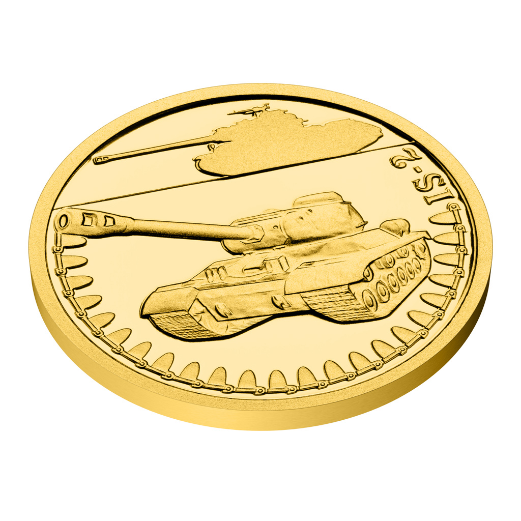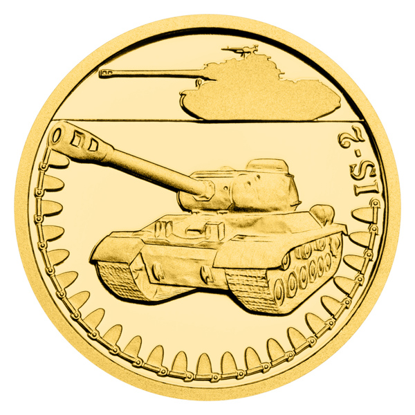 Na dvanácté zlaté minci České mincovny z cyklu Obrněná technika se objevuje sovětský tank IS-2, který sloužil za druhé světové války.