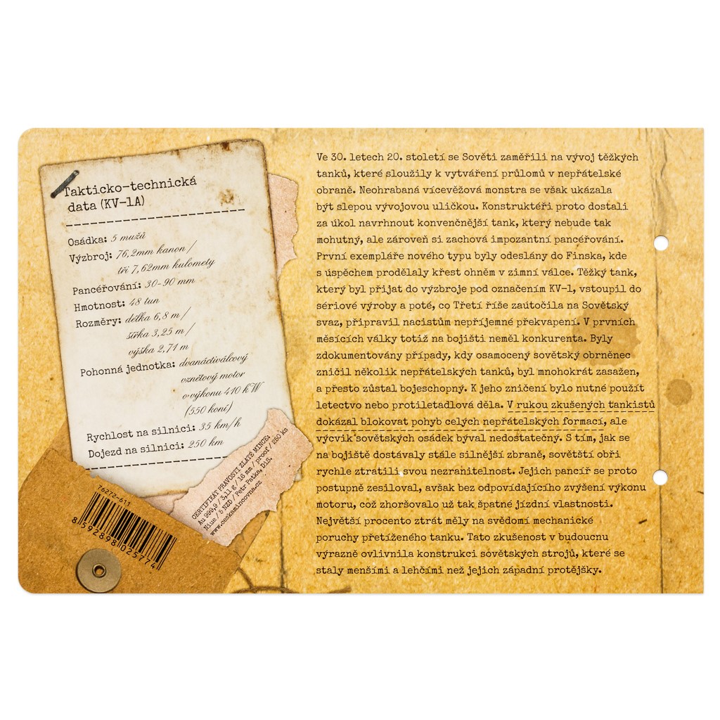 Součástí mince je výpravné balení v podobě katalogové karty plné dobových fotografií, zajímavostí a takticko-technických dat. Jednotlivé karty si můžete ukládat do sběratelského šanonu, který rovněž najdete v nabídce České mincovny.