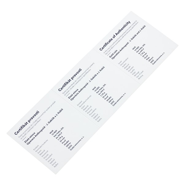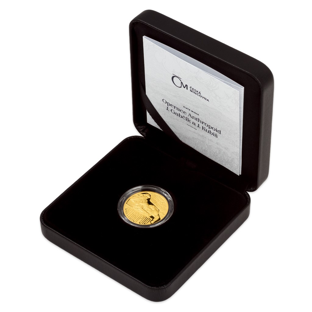 Druhá zlatá mince České mincovny ze čtyřdílné minisérie s názvem Operace Anthropoid, která vychází u příležitosti 80. výročí atentátu na Reinharda Heydricha, připomíná hrdinné výsadkáře Jozefa Gabčíka a Jana Kubiše.