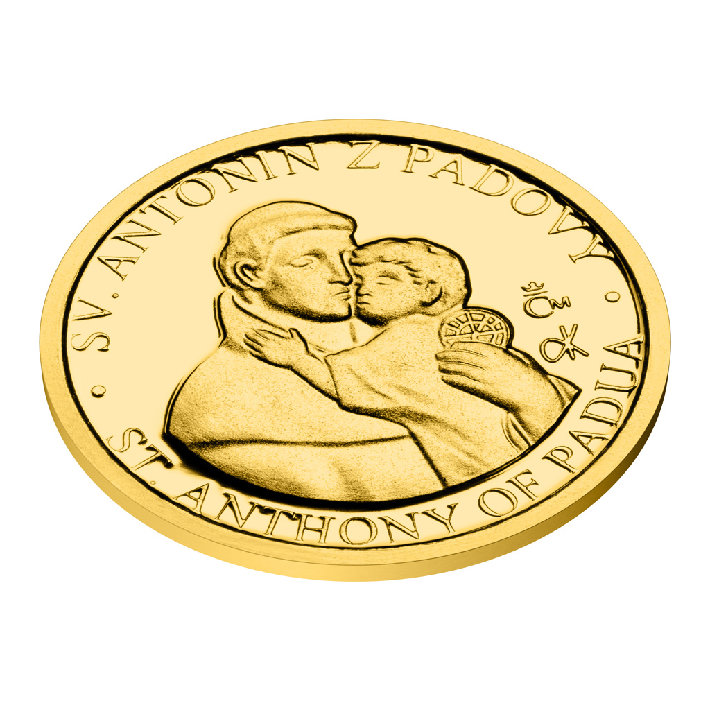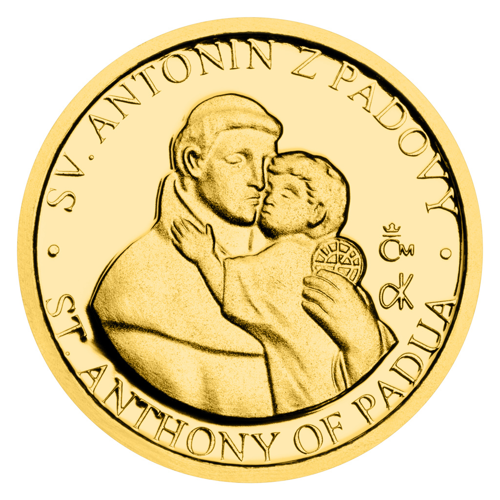 Zlatá mince Patroni - Svatý Antonín z Padovy proof